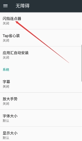 2、然后在无障碍里面,找到闪指连点器,然后开启;
