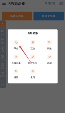 4、选择点击的动作类型;