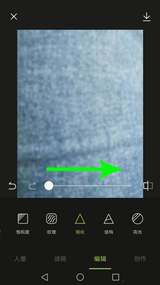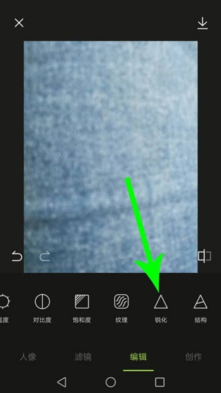 5、优化完成后向左滑动工具栏,接着点击“锐化”按钮。
