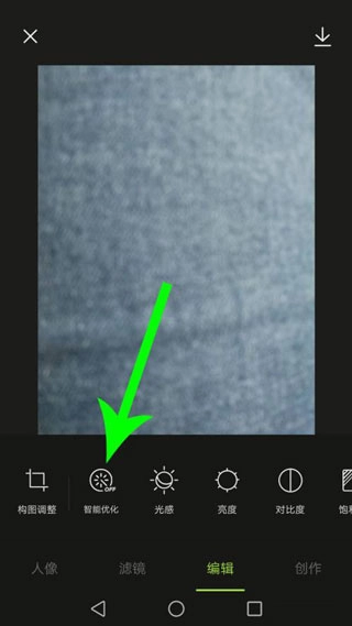 4、进入编辑界面后,点击“智能优化”功能,以此提升图片的清晰度。
