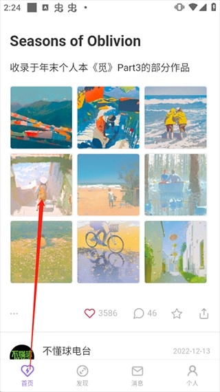 1、我们先找到需要保存的目标图片或视频,如下图所示的《觅》部分作品分享帖