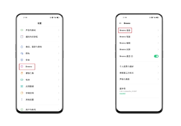 ColorOS 6至11.3版本:「设置 > Breeno > Breeno语音」