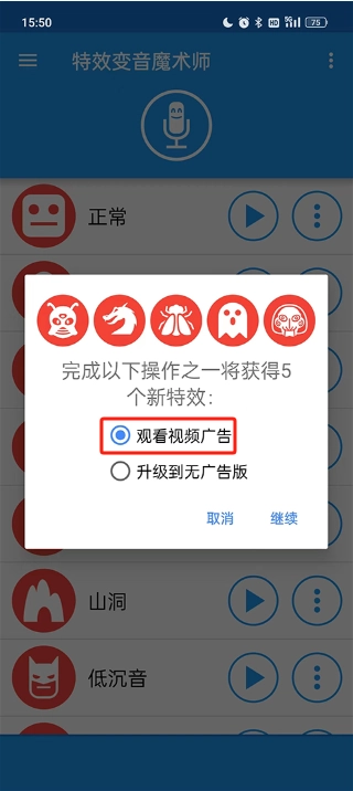 1、观看视频广告可以解锁全部的声音文件。