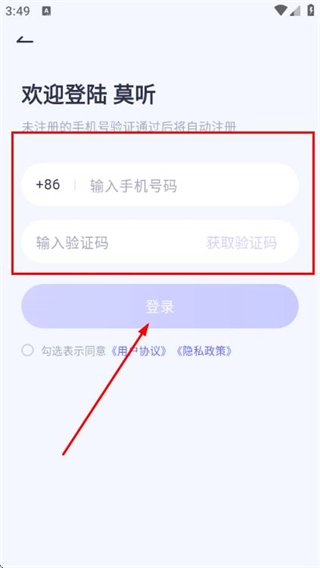 3、在登录页面输入手机号与验证码,勾选相关协议后,点击登录按钮即可完成账号登录流程。