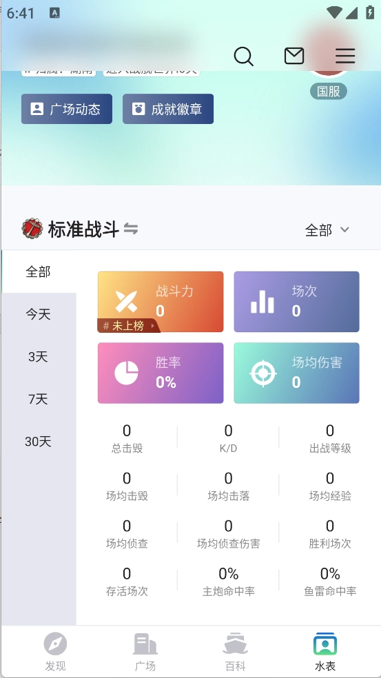 5、查看个人战绩:在水表板块登录账号后,能够查看自身的战斗数据,像胜率、伤害、战斗力等信息都能看到,还可以分享自己的战绩。