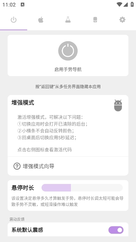 1. 在魔趣网(m.mfunz.com)下载并安装gesture小横条应用,进入应用主界面后,首先请进入设置页面开启手势导航功能。