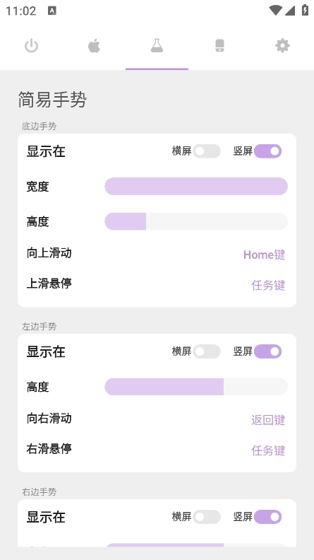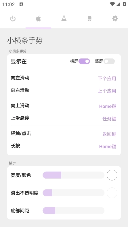 gesture小横条是一款功能十分强大的手机快捷启动与手势应用,你能够在gesture小横条里设置向左或向右滑动的快捷键,还可以自定义上下左右手势的高度和宽度,选择是否开启横屏或者竖屏模式,就连底边的三段区域都能依据自身需求进行个性化设置。要是你热衷于把手机打造成独具个人风格的样子,那么gesture小横条增强版绝对是你的不二之选。