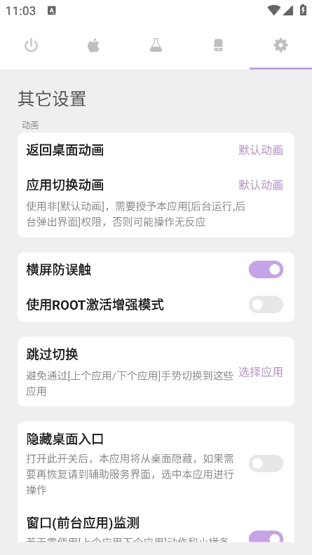5. 也能够开展其他关联设置,像动画模式、Root权限强化、游戏防误触之类的。