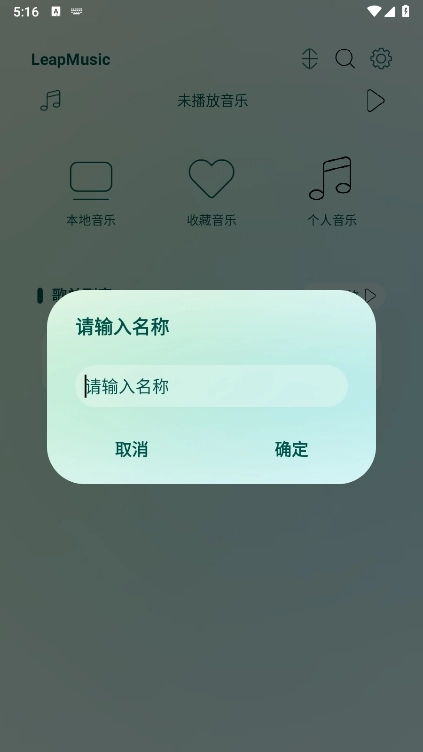 5、若需创建歌单,可点击首页的“创建歌单”按钮,随后编辑好歌单名称即可完成操作。
