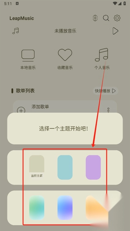 LeapMusic最新版本采用简洁风格的界面设计,提供多个主题供用户自由选择,帮助用户轻松开启音乐聆听之旅。