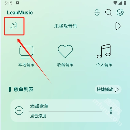 4、点击左上角的“音乐”图标即可快速播放本地音乐
