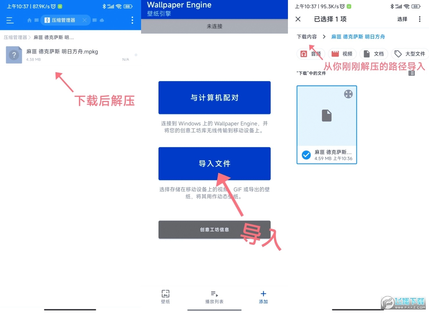 先下载壁纸引擎软件,接着获取对应的壁纸资源压缩包,随后将该压缩包解压,最后打开壁纸引擎软件,导入解压后压缩包里后缀为mpkg的文件。