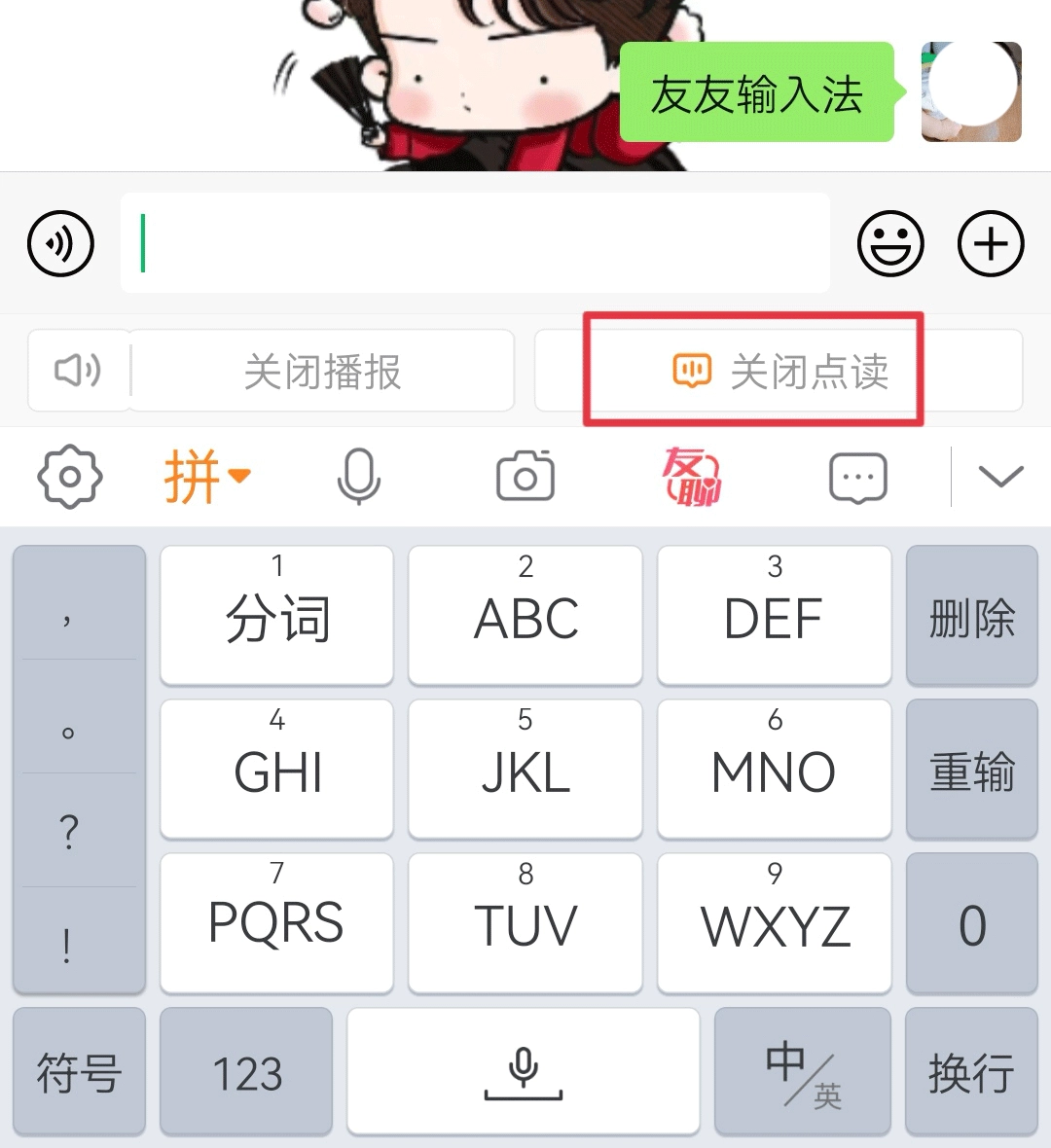 3、语音点读功能使用方法:在输入法键盘界面点击“开启点读”按钮,随后进入手机系统设置中开启悬浮窗权限即可。
