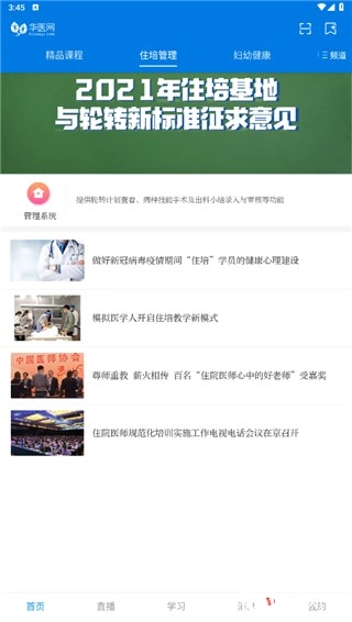 2、用户点击“住培管理”选项后,即可查看医院发布的最新相关政策。