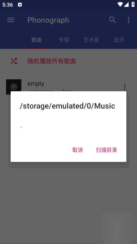 6.选定文件夹,添加音乐后即可播放。