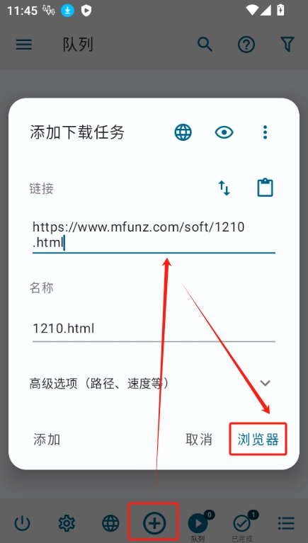 要开启文件任务,您只需在ADM器里输入文件对应的链接,也可以从浏览器复制链接后粘贴到ADM器中,ADM器会自动识别并处理该链接。