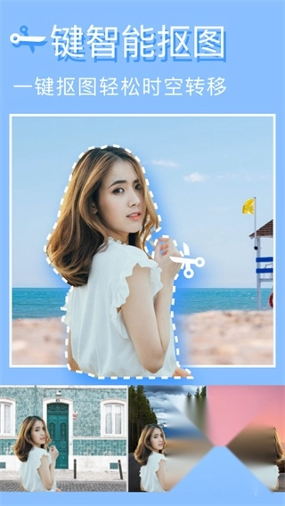美图编辑大师安卓版拥有一键抠图的功能,能够智能抠图并更换背景,用户可以轻松给照片更换背景,或是创造出有趣的合成效果。