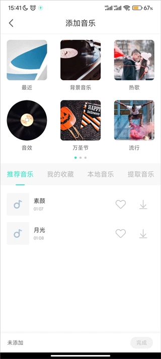 3.选择录音大师自带素材或本地音乐。