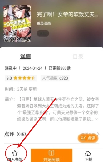 2、如图所示,在漫画详情页面,点击“加入书架”按钮就可以了。