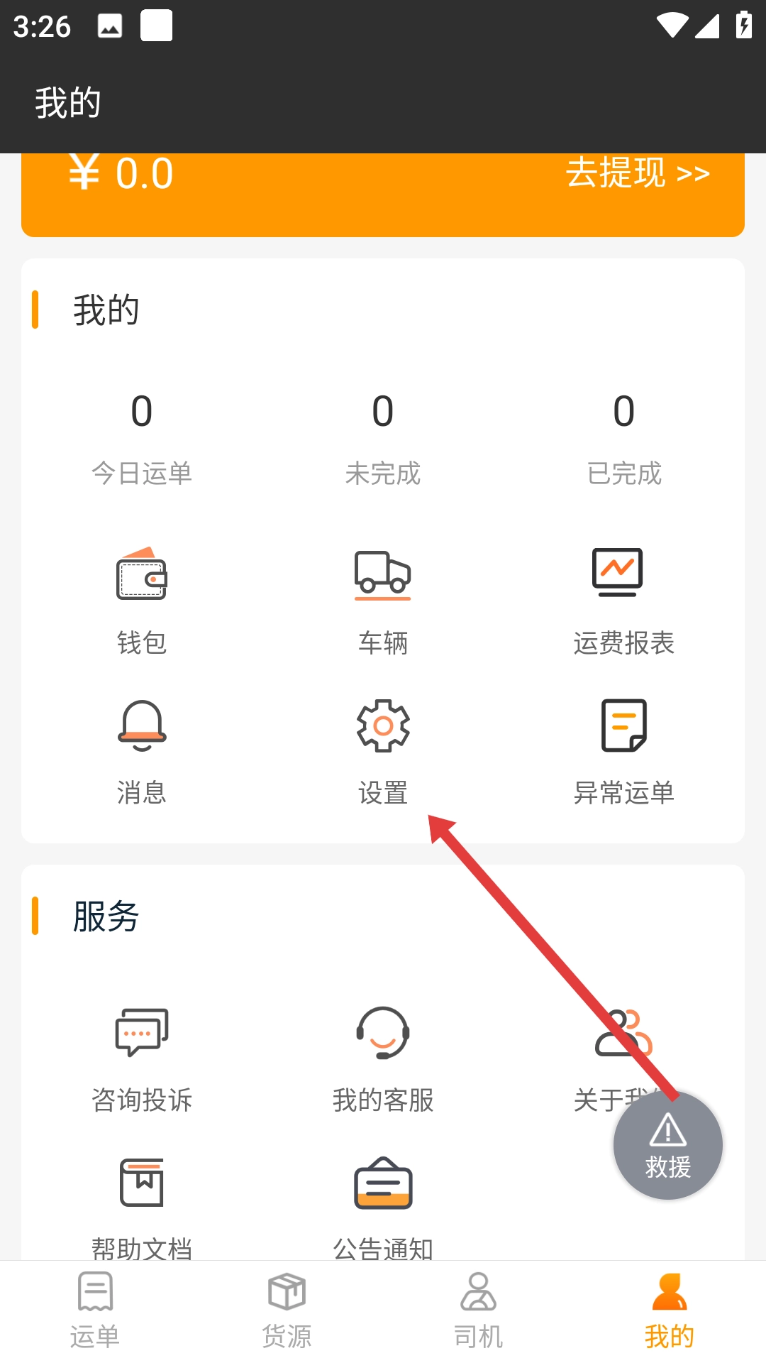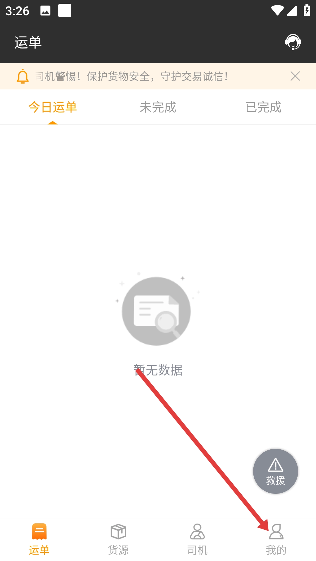 1、在货运类运单页面,点击右下角的【我的】选项,即可进入个人中心页面。