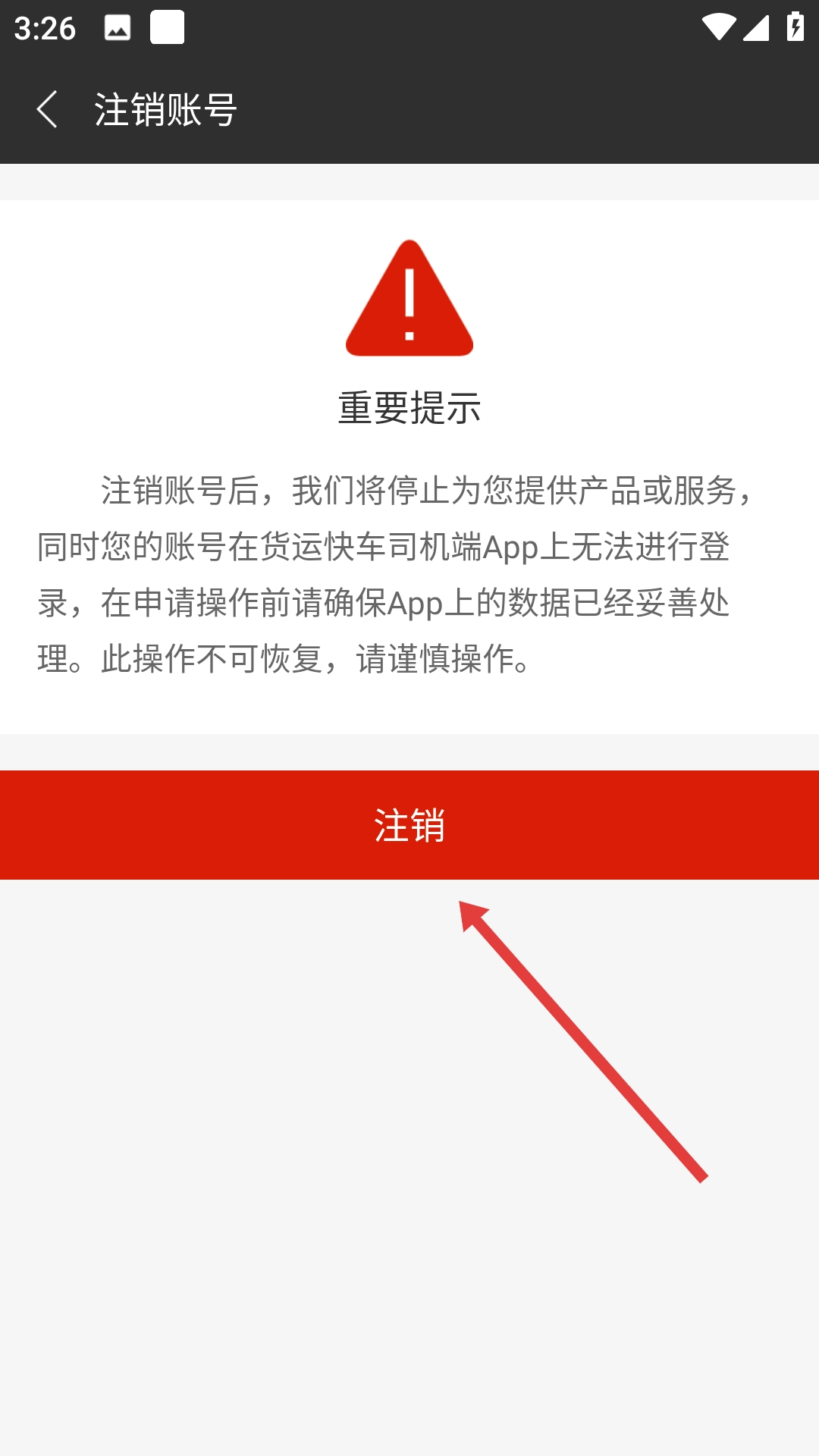 4、进入账号注销页面后,请仔细阅读页面上的重要提示信息,随后点击【注销】按钮,就能完成账号注销的操作。