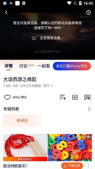 4、接着进行搜索连接所需的投屏设置,完成连接后就能投屏播放了,需要留意的是手机和投屏设备要处于同一WiFi环境下。