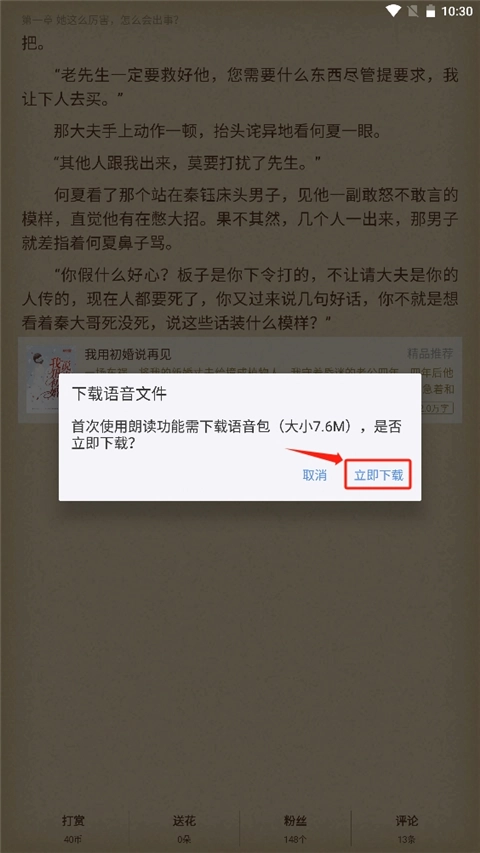 5、第一次使用需要语音包,点击"立即"。