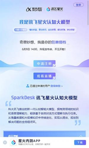 1、一共有两种申请途径,第一种是先进入讯飞星火版网站,然后点击申请注册按钮进行操作。
