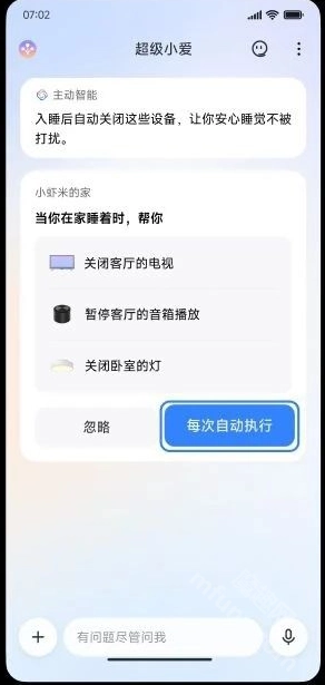 超级小爱会在学习到你的设备操作习惯后及时推送相关内容,点击推送卡片即可进入超级小爱对话页面。