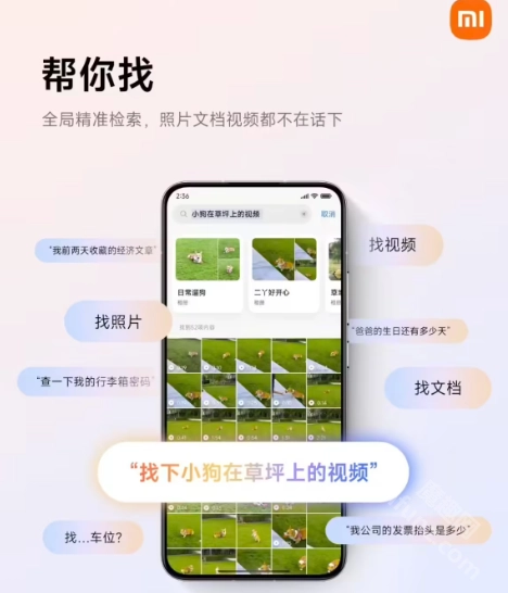 帮你查找:智能检索设备里的照片、视频、文件等内容,以及超级小爱记忆的全部信息,一句话就能轻松完成。