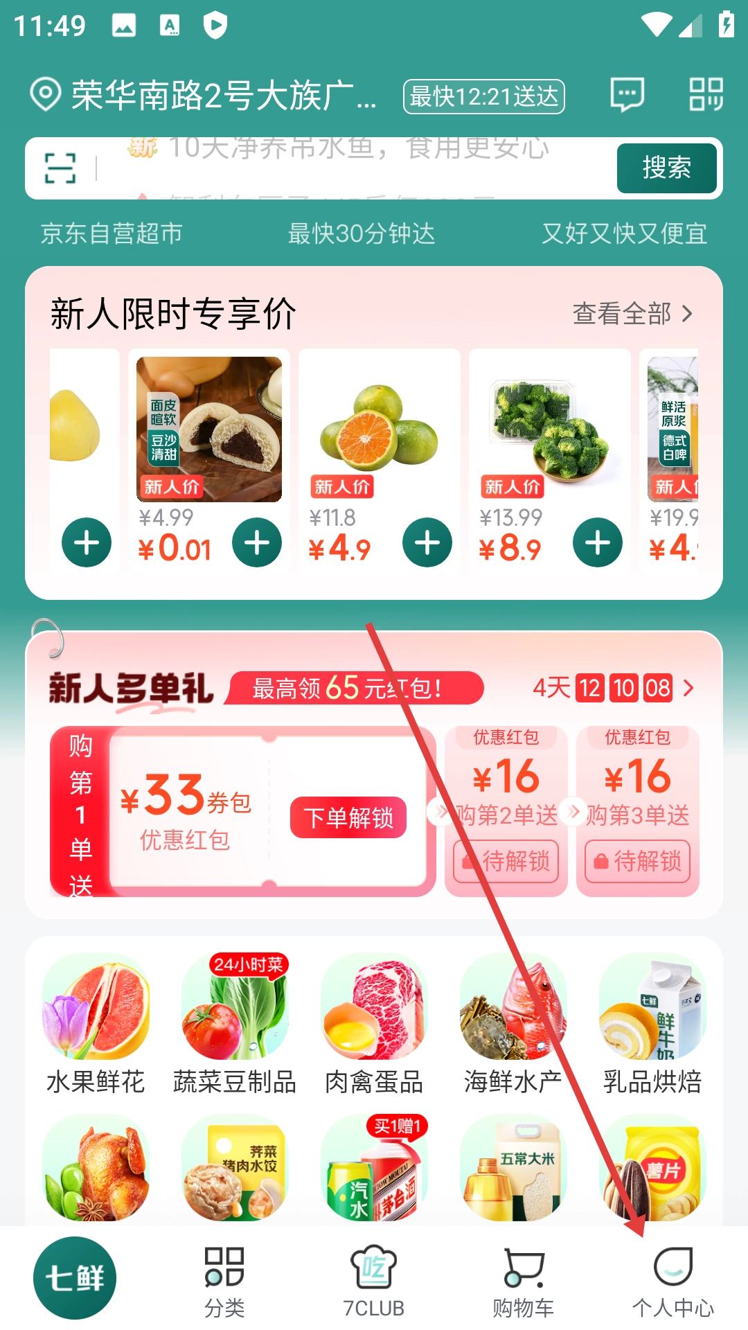 1、关注七鲜公众号,享受各色优惠活动
