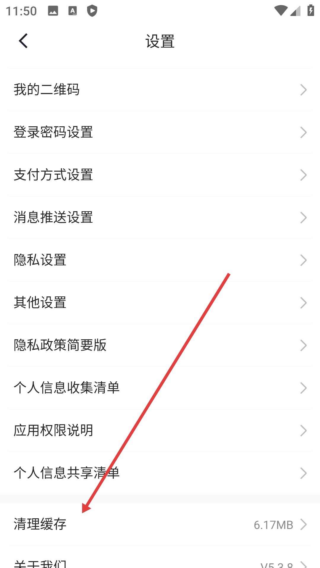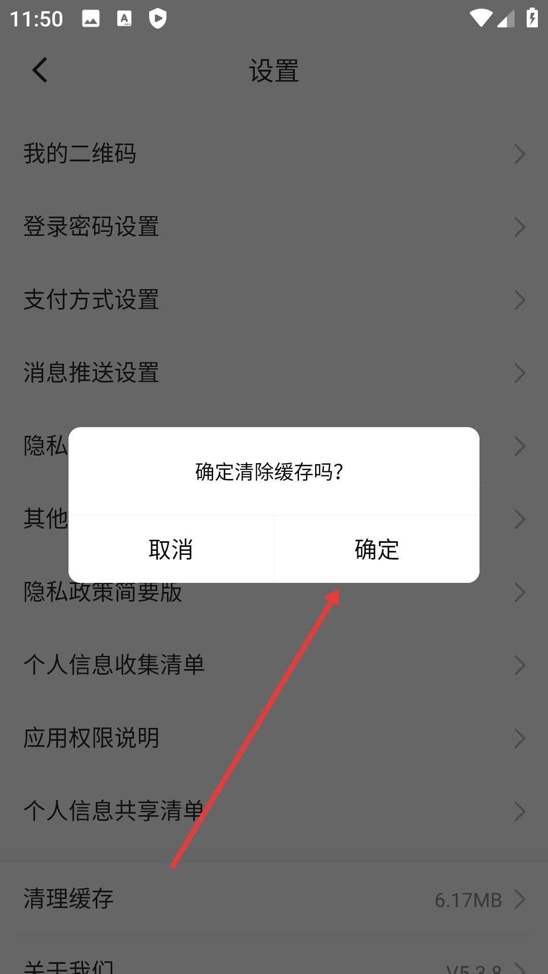 3、进入设置页面后点击【清理缓存】选项,此时会弹出确认是否清除缓存的提示框。