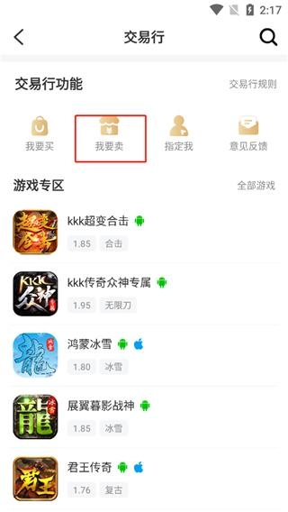 1、玩家能在平台内体验各类传奇游戏,若游戏账号里有较多角色或货币,便可通过交易获取收益,具体操作是点击“我的”,从“我的”页面进入交易行;