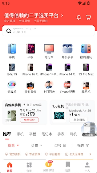 找靓机作为二手电子产品交易平台,业务范围以手机、平板、电脑等品类为主。平台配备专业团队,对每台设备实施多轮检测流程,以此保障所售商品均为原装正品,同时提供详尽的验机报告供用户查阅参考。用户既能在此选购性价比突出的二手设备,也可将自有旧机进行快速估价并完成回收,全程还能享受上门取件、即时打款等便捷服务。