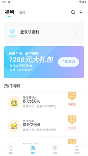 1、在【福利】界面点击【赚积分】和【抽大奖】;