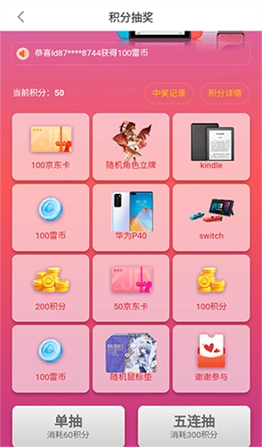 3、接着使用所获取的积分,在【积分抽奖】页面参与抽奖赢取大奖。