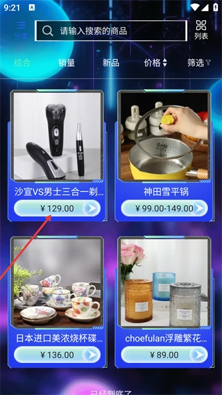3、进入分类页面后,页面会呈现对应品类的商品,例如【沙宣VS男士三合一剃...】,同时也可以借助销量、价格等选项来对商品进行排序和筛选。