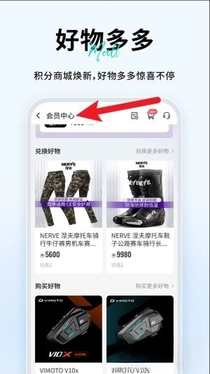 4、在好物多多界面点击“会员中心”,即可查看专属权益,还能进行积分兑换商品以及查看购物订单详情的操作。