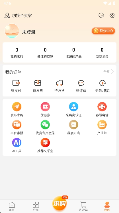 在个人中心可以切换至卖家服务,所有订单也能在此处进行浏览。