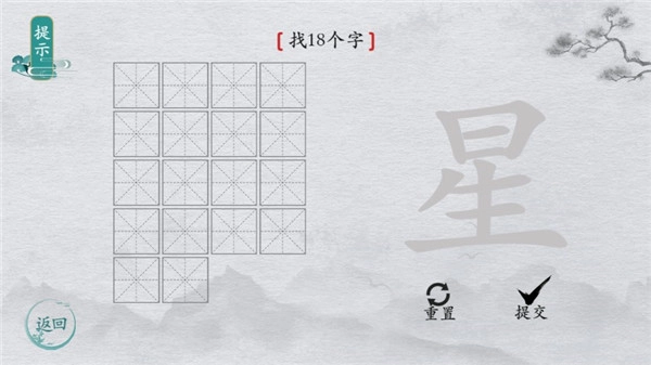 3、在“星”这个字中要找出18个字;