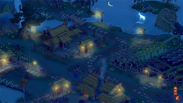 《桃源记》这款游戏的创作灵感源自著名诗人陶渊明笔下的《桃花源记》。它所讲述的核心故事发生在战事频发的中国古代,有一个村庄因长期遭受战火摧残,村民们最终选择背井离乡,去寻觅一处安宁无扰、隔绝纷争的山谷,以此开启重建家园的历程。