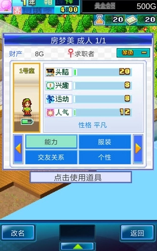 头脑会对就职和考试产生影响;兴趣会影响称号挑战的过程;运动能力关乎移动速度;人气则与恋爱能力相关。