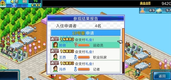 实验结果显示,租客是否选择入住主要看居住舒适度;礼金数额则和租金挂钩,通常礼金需不低于租金的7倍——比如租金是73的话,礼金最少得511。要是租客自身属性比较低,所需的礼金还会更高一些。另外,放置家具是否划算也能通过计算得出:举例来说,厨房家具能让租金增加3,而摆放花卉需要花费6G,那么放上花卉后至少能赚3×7 - 6 = 15G;要是担心维护费用太高,等收完礼金后把花卉拆掉就行。