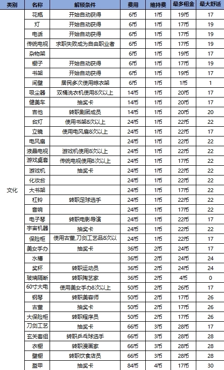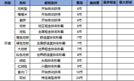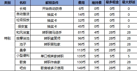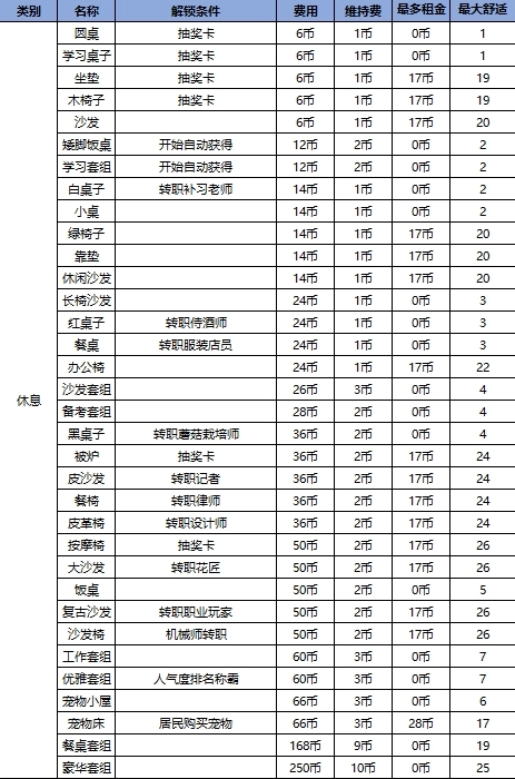 所有家具解锁条件如下图