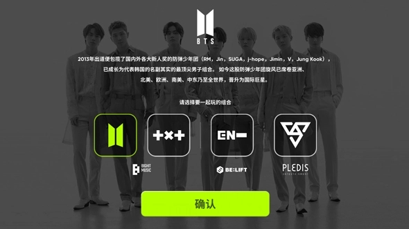 3、挑选一个想一起互动的偶像组合,目前共有四个组合可供选择;