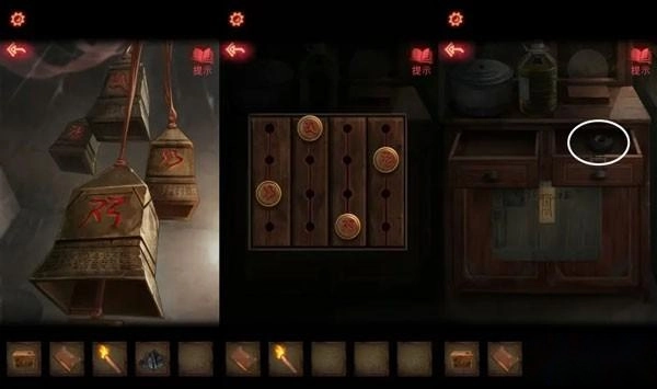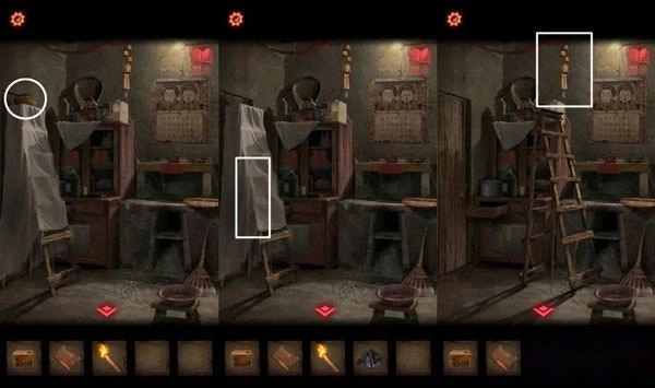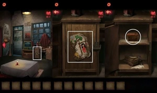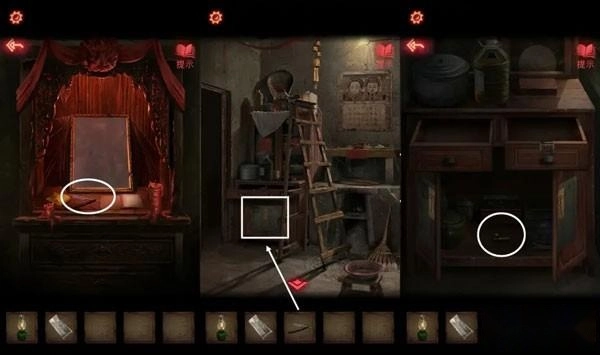 14、把两张【半张照片】放入相框中,从神龛木板上获取【鬼头刀】,使用【鬼头刀】砍开木门,逃离屋子。