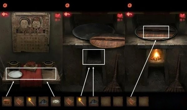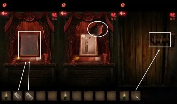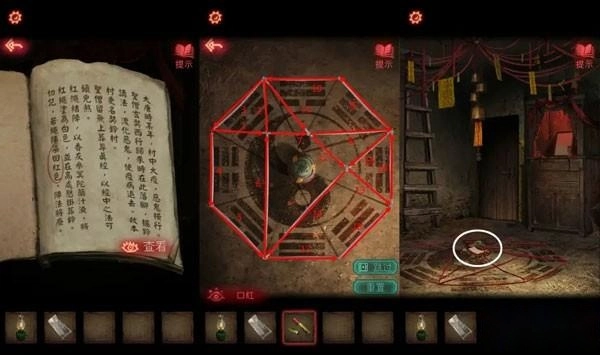 13、按照神龛上书里的说明,用【口红】点击坛子,把绳子涂成红色,然后从碎掉的坛子上获取【半张照片】。
