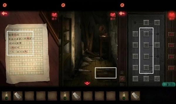 11、依据纸上圈出的字,机关,开启地下室的门。