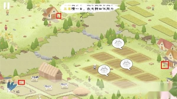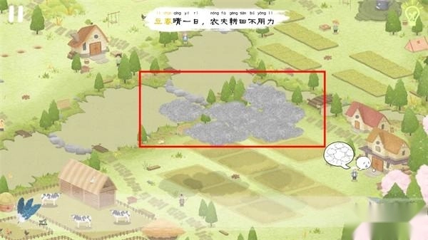 立春这天,左下方的农民大叔却发起了愁——田地上空正被厚厚的乌云笼罩着。你需要点击这些乌云将它们驱散,并且要持续点击,直到所有乌云都彻底消失不见。