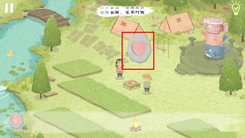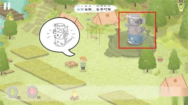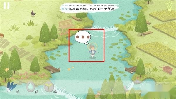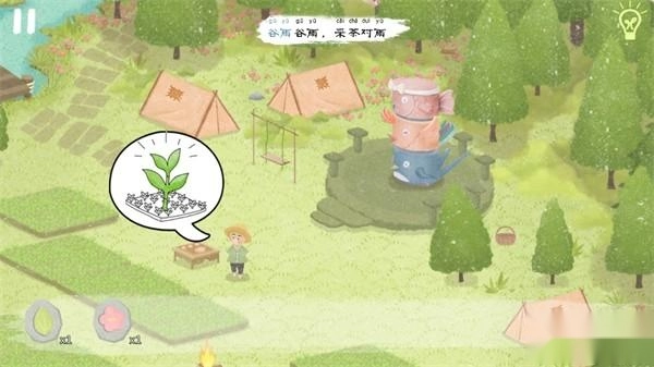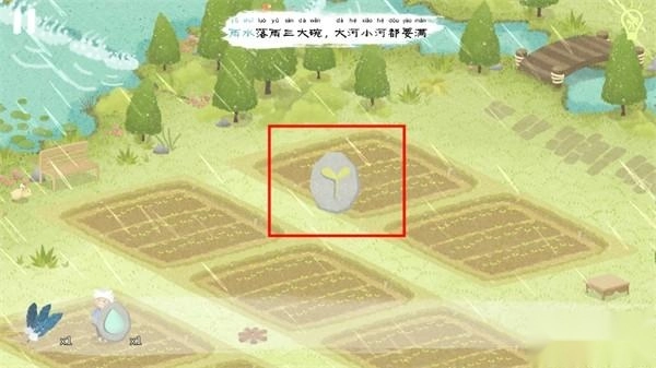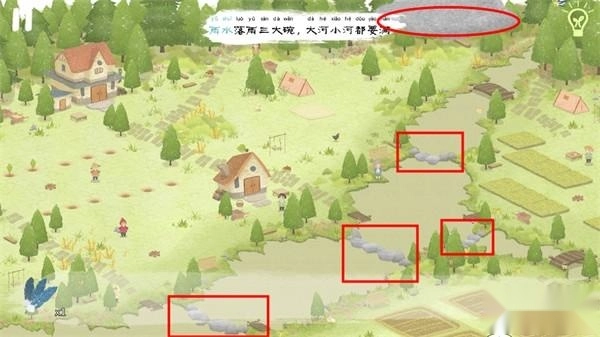 当所有河流都注满水后,河边的老婆婆激动地跳进了河里,点击婆婆身旁就能得到“水滴石板”;大雨之中,在田地上方还能获取嫩芽石板。